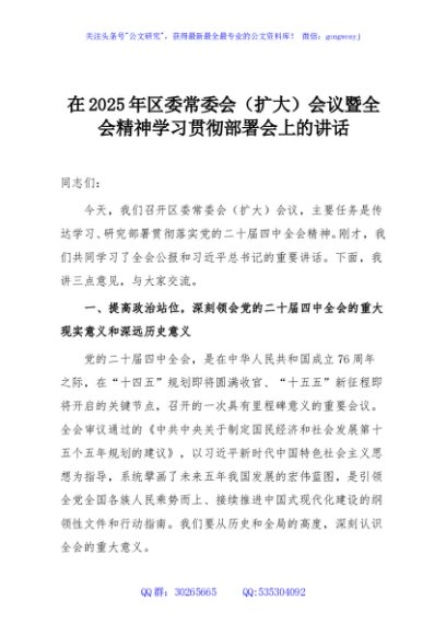 / 在2025年区委常委会(扩大)会议暨全会精神学习贯彻部署会上的讲话
