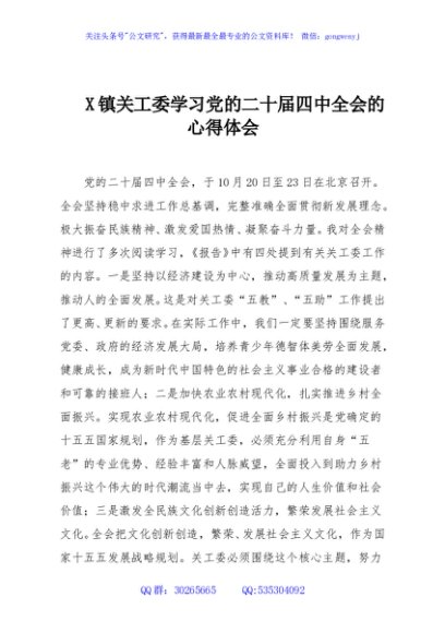 / X镇关工委学习党的二十届四中全会的心得体会