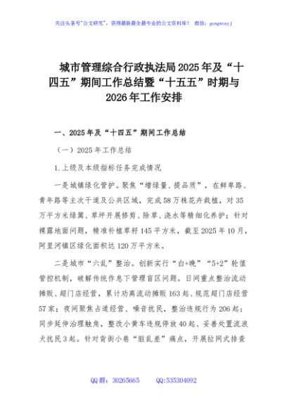 / 城市管理综合行政执法局2025年及“十四五”期间工作总结暨“十五五”时期与2026年工作安排