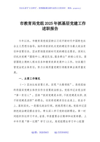 / 市教育局党组2025年抓基层党建工作述职报告