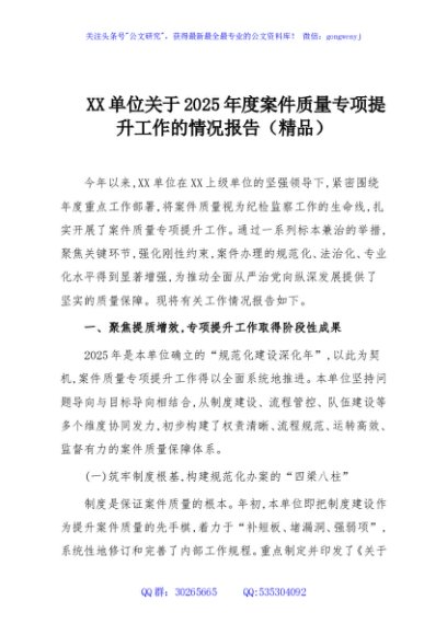 / XX单位关于2025年度案件质量专项提升工作的情况报告(精品)