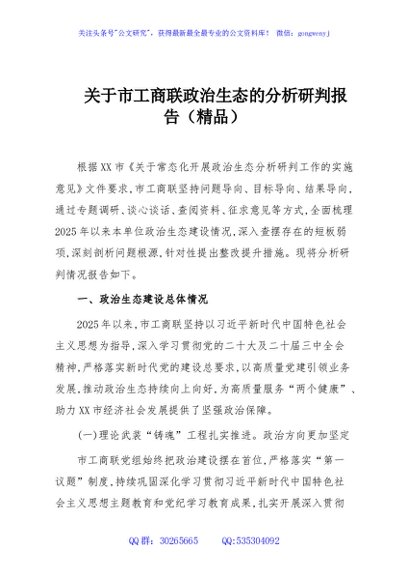 / 关于市工商联政治生态的分析研判报告(精品)