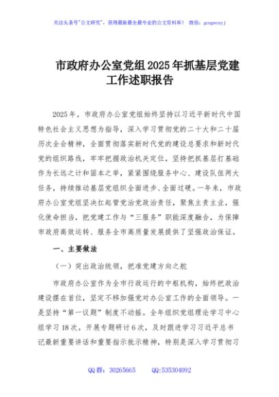 / 市政府办公室党组2025年抓基层党建工作述职报告