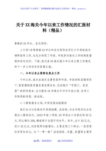 / 关于XX海关今年以来工作情况的汇报材料(精品)