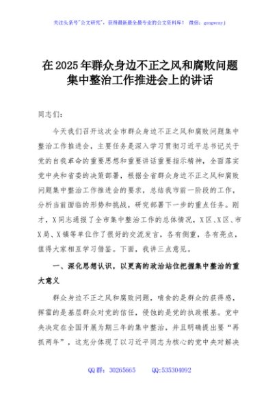 / 在2025年群众身边不正之风和腐败问题集中整治工作推进会上的讲话