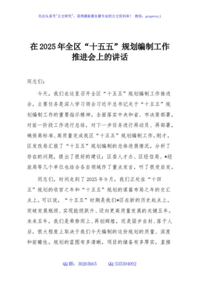 / 在2025年全区“十五五”规划编制工作推进会上的讲话