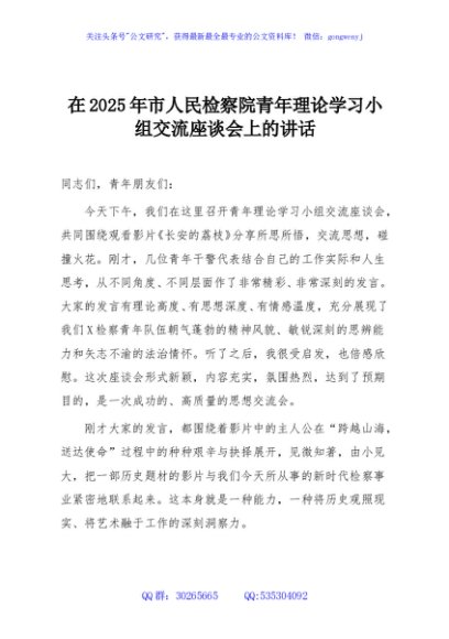 / 在2025年市人民检察院青年理论学习小组交流座谈会上的讲话