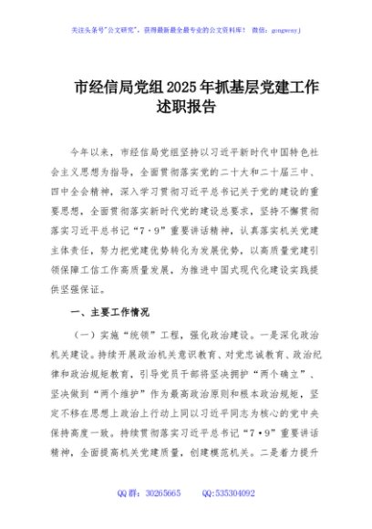 / 市经信局党组2025年抓基层党建工作述职报告