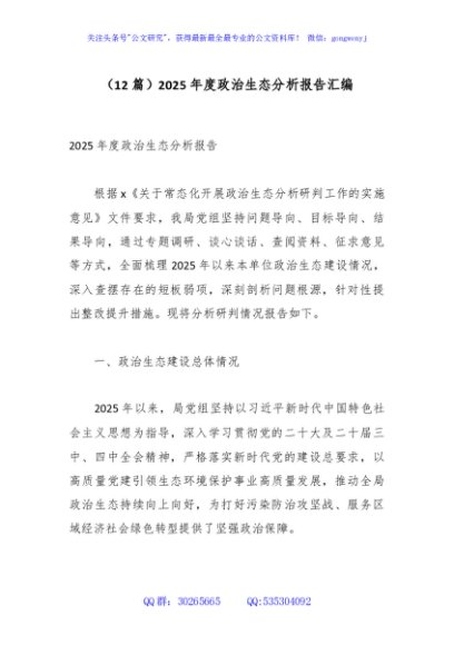 / (12篇)2025年度政治生态分析报告汇编
