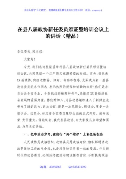 / 在县八届政协新任委员颁证暨培训会议上的讲话(精品)