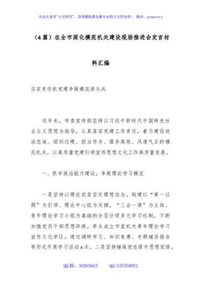 / (4篇)在全市深化模范机关建设现场推进会发言材料汇编