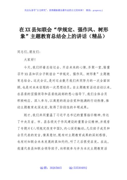 / 在XX县知联会“学规定、强作风、树形象”主题教育总结会上的讲话(精品)