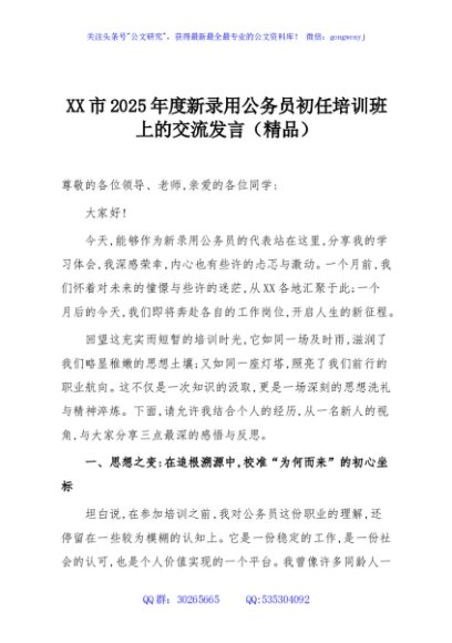/ XX市2025年度新录用公务员初任培训班上的交流发言(精品)