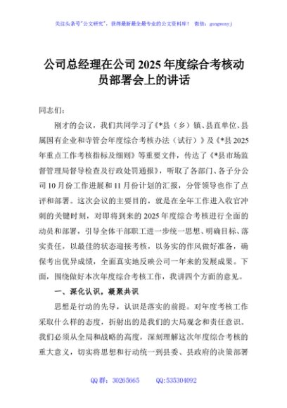 / 公司总经理在公司2025年度综合考核动员部署会上的讲话