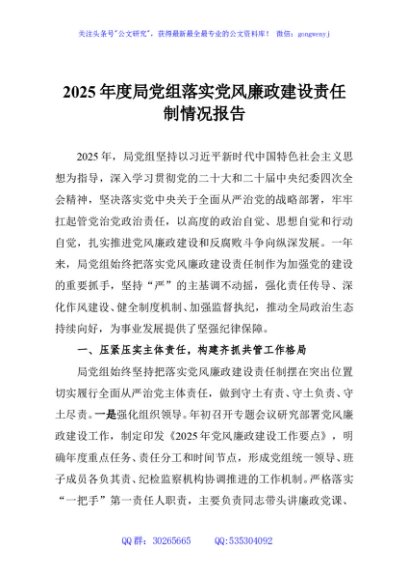 / 2025年度局党组落实党风廉政建设责任制情况报告