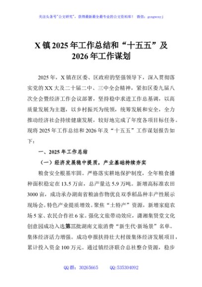 / X镇2025年工作总结和“十五五”及2026年工作谋划