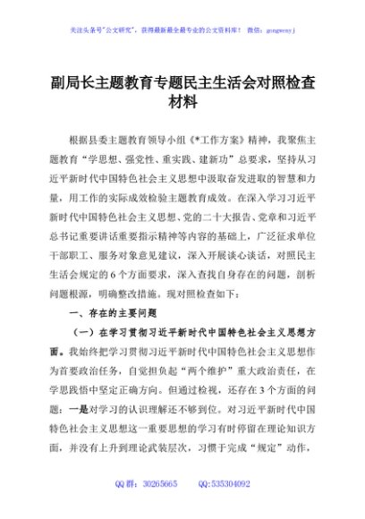 / 副局长主题教育专题民主生活会对照检查材料