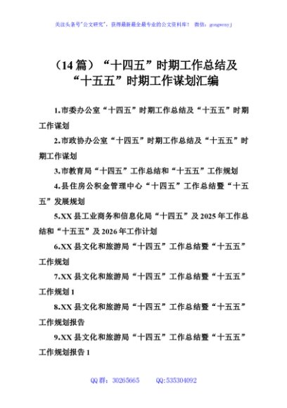 / (14篇)“十四五”时期工作总结及“十五五”时期工作谋划汇编