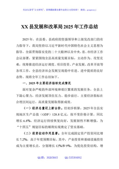 / XX县发展和改革局2025年工作总结