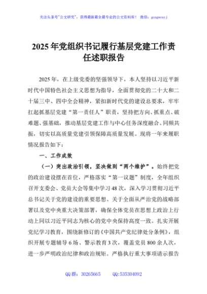/ 2025年党组织书记履行基层党建工作责任述职报告