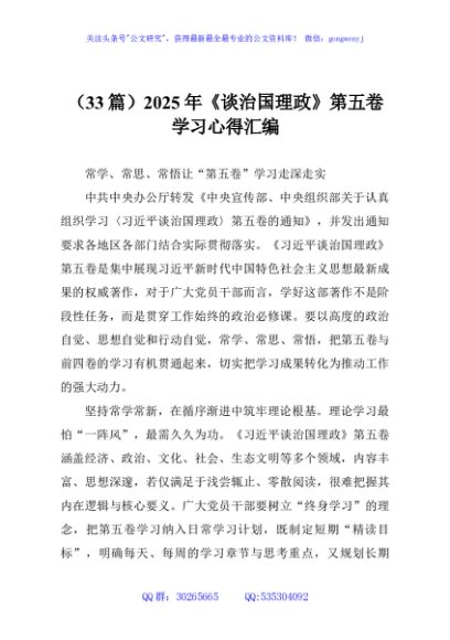 / (33篇)2025年《谈治国理政》第五卷学习心得汇编