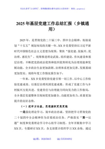 / 2025年基层党建工作总结汇报(乡镇通用)