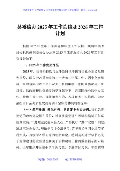 / 县委编办2025年工作总结及2026年工作计划