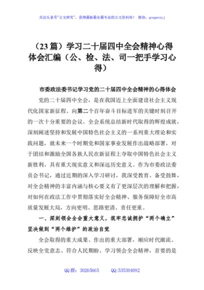 / (23篇)学习二十届四中全会精神心得体会汇编(公、检、法、司一把手学习心得)