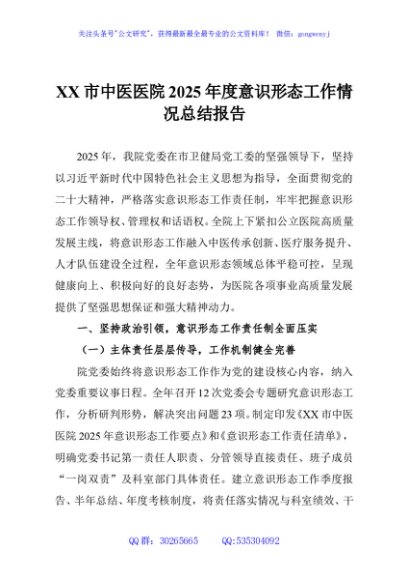 / XX市中医医院2025年度意识形态工作情况总结报告