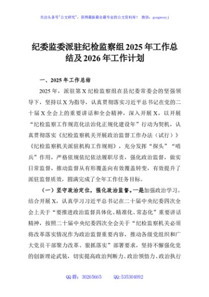 / 纪委监委派驻纪检监察组2025年工作总结及2026年工作计划