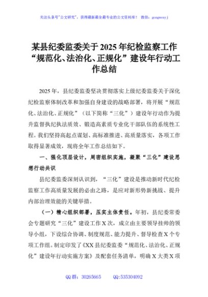 / 某县纪委监委关于2025年纪检监察工作“规范化、法治化、正规化”建设年行动工作总结
