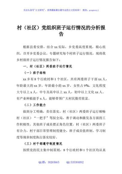 / 村(社区)党组织班子运行情况的分析报告