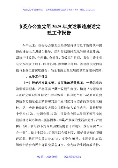 / 市委办公室党组2025年度述职述廉述党建工作报告