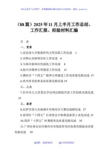 / (88篇)2025年11月上半月工作总结、工作汇报、经验材料汇编