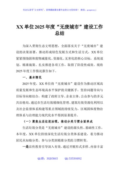 / XX单位2025年度“无废城市”建设工作总结