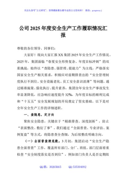 / 公司2025年度安全生产工作履职情况汇报