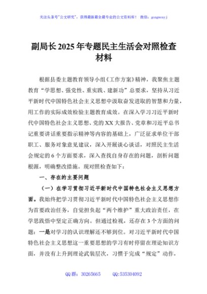 / 副局长2025年专题民主生活会对照检查材料