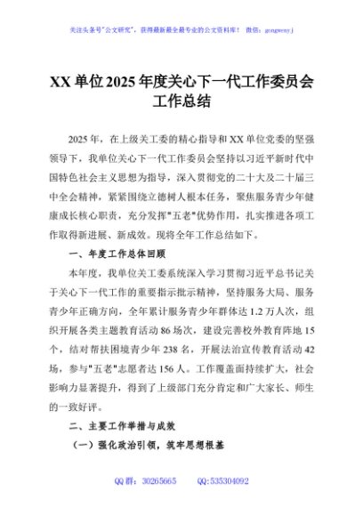 / XX单位2025年度关心下一代工作委员会工作总结