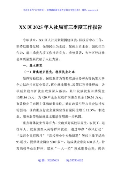 / XX区2025年人社局前三季度工作报告