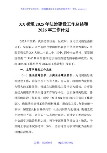 / XX街道2025年法治建设工作总结和2026年工作计划