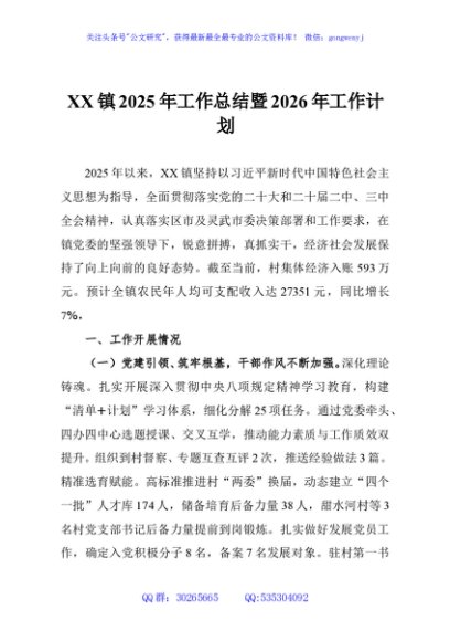 / XX镇2025年工作总结暨2026年工作计划