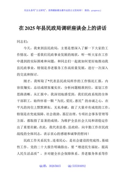 / 在2025年县民政局调研座谈会上的讲话