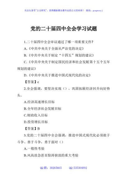 / 党的二十届四中全会学习试题