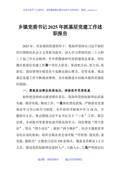 / 乡镇党委书记2025年抓基层党建工作述职报告