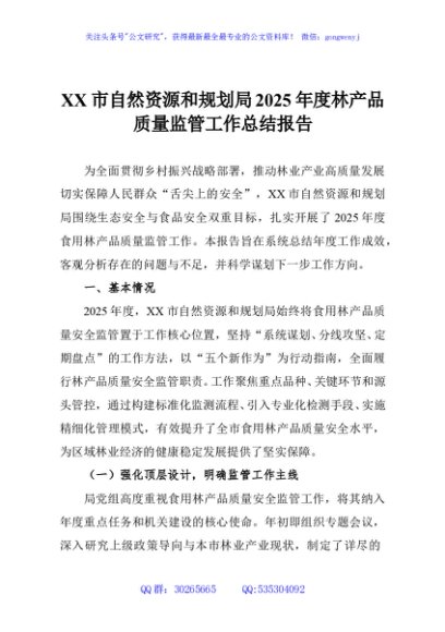 / XX市自然资源和规划局2025年度林产品质量监管工作总结报告