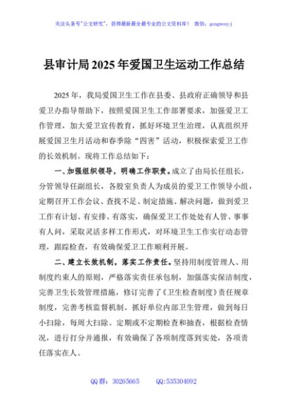 / 县审计局2025年爱国卫生运动工作总结