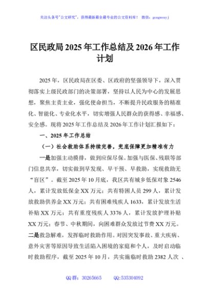 / 区民政局2025年工作总结及2026年工作计划