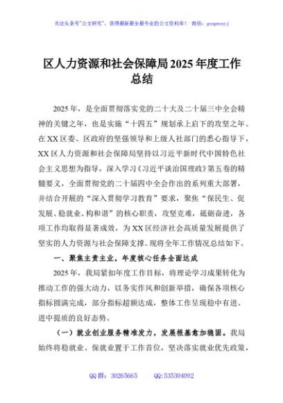 / 区人力资源和社会保障局2025年度工作总结