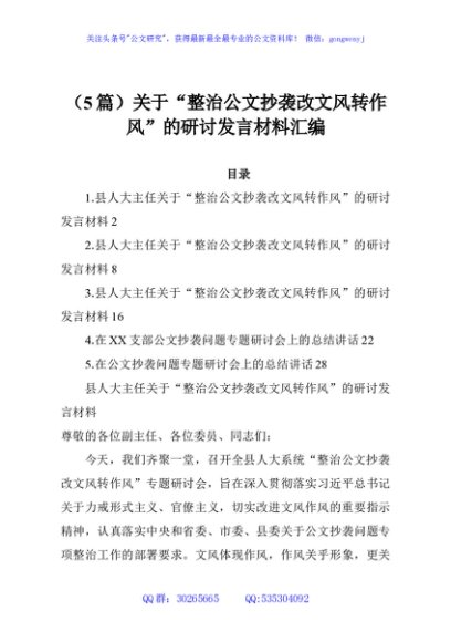 / (5篇)关于“整治公文抄袭改文风转作风”的研讨发言材料汇编
