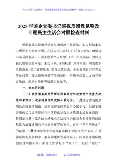 / 2025年国企党委书记巡视反馈意见整改专题民主生活会对照检查材料